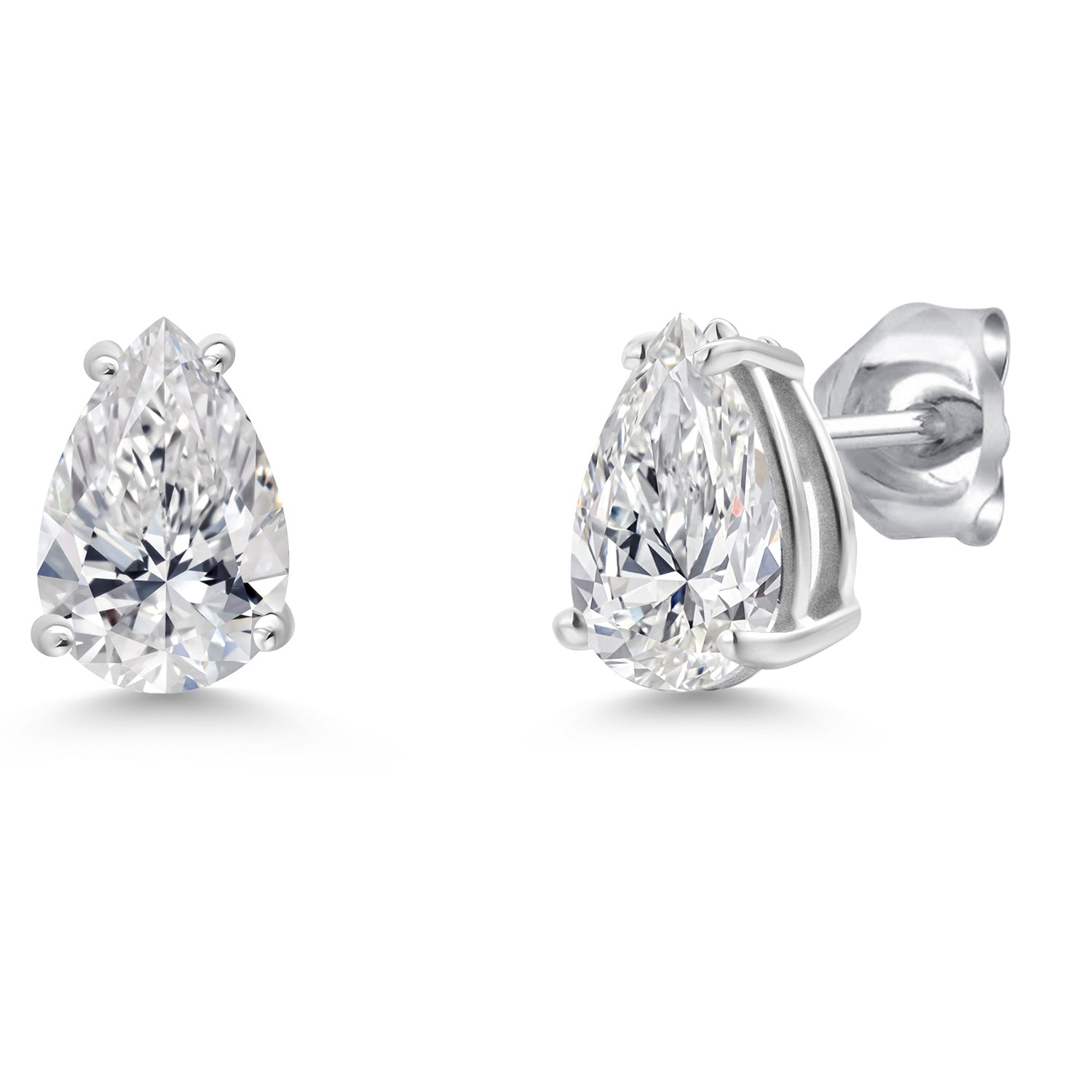 1.40 Ct 14K White Gold IGI Certified Lab Grown Diamond Stud Basket Setting Earrings | Pear Shaped | E-F Color | VS1-VS2 Clarity | Double Notch | Gold Earrings For Women Men