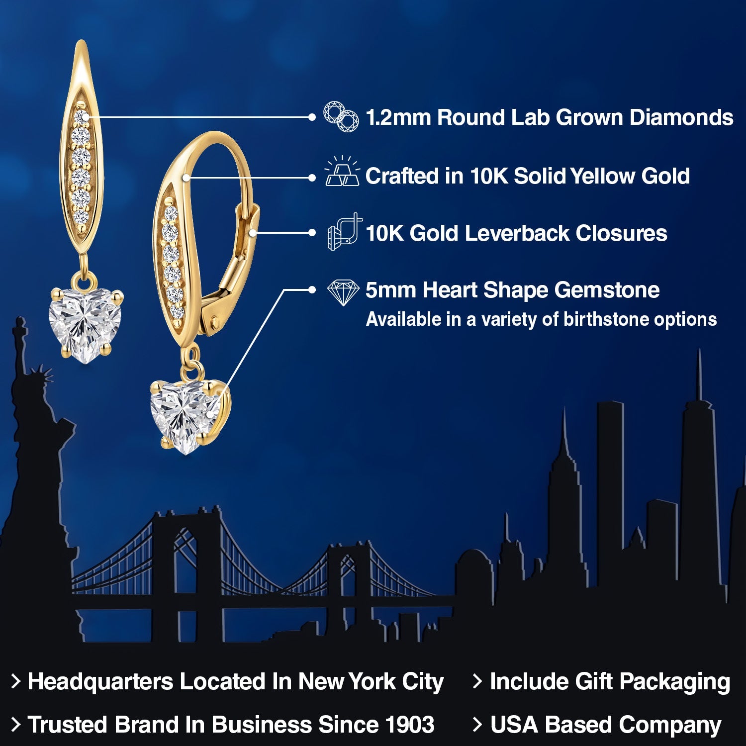 STUNNING 5MM HEART-SHAPED GEMSTONE: Expertly cut into an exquisite heart shape, this 5MM gemstone is a birthstone option that adds a personal and meaningful touch to the jewelry. Each gemstone is carefully selected for its brilliance and clarity, making it a significant and sentimental centerpiece of these elegant earrings.