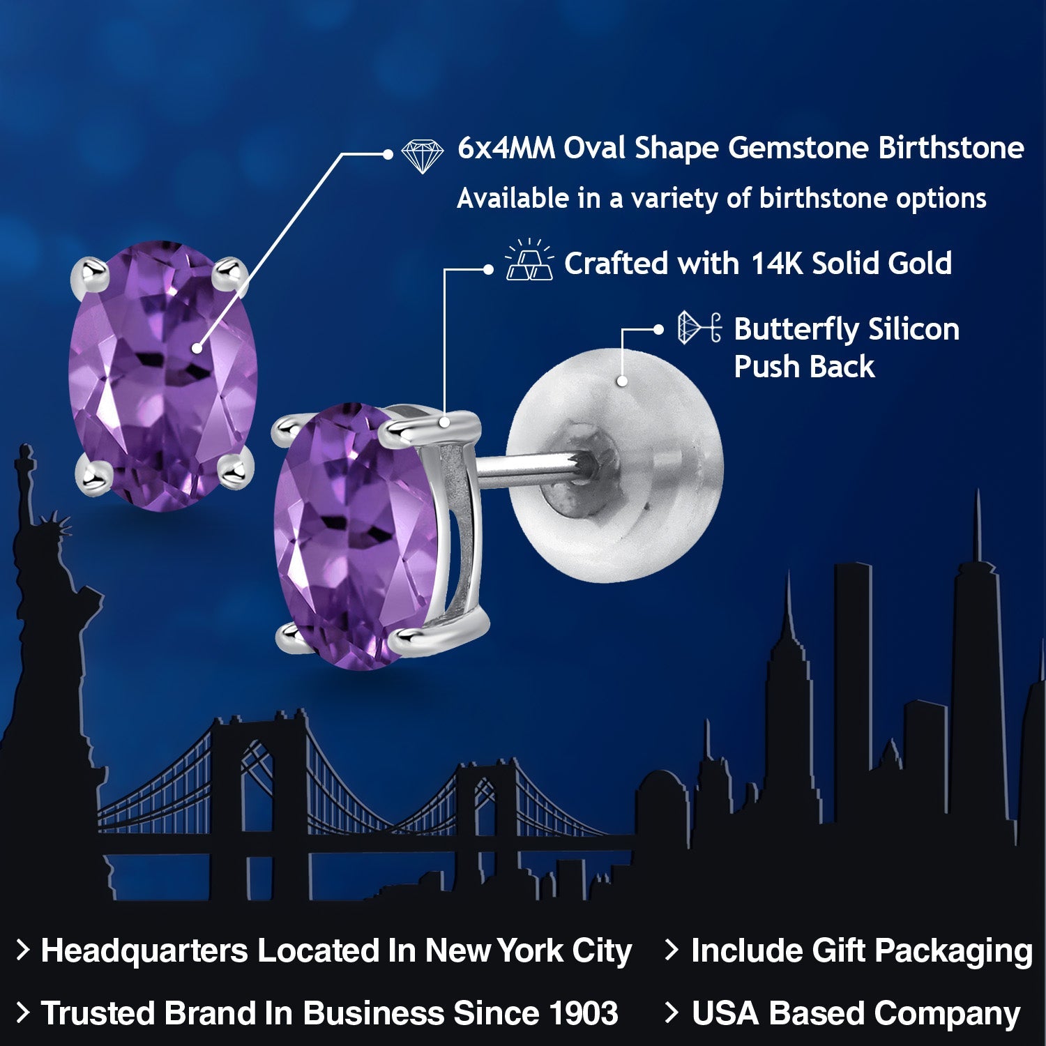 14K Gold Gemstone Birthstone Oval Stud Earrings | Oval 6X4MM | Gold Earrings For Women Men | Fine Jewelry Gifts for Her Mom Women Wife