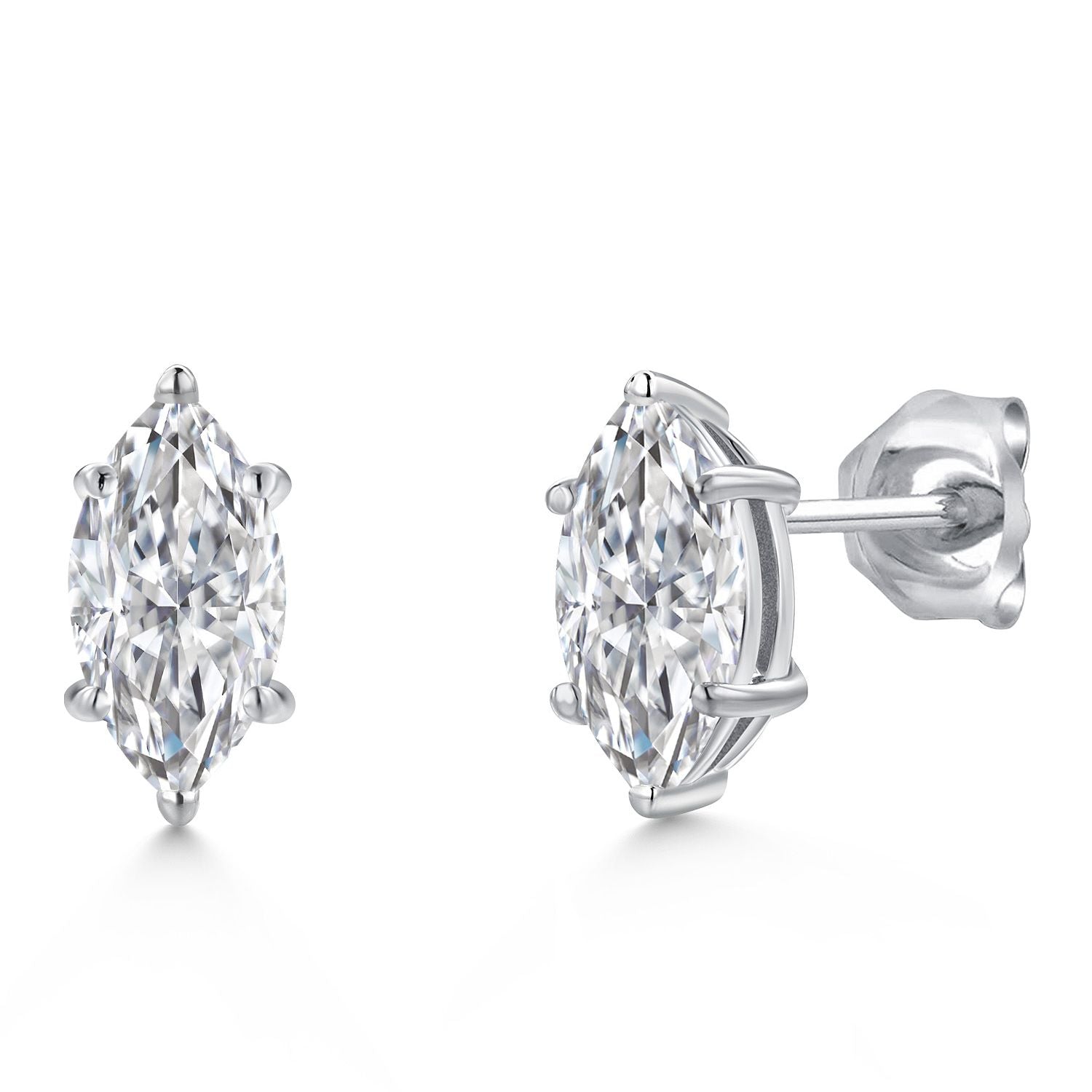 14K White Gold 8X4MM Marquise Cut Gemstone Birthstone Double Notch Stud Earrings | Gold Earrings For Women Men