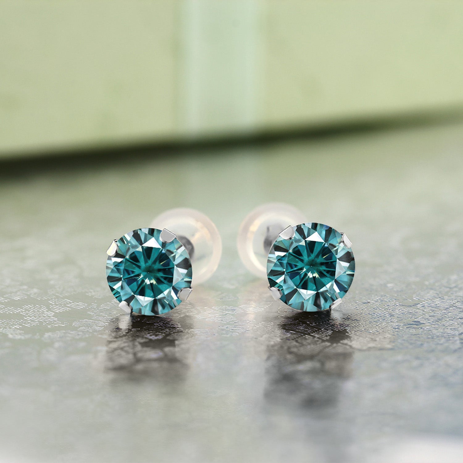 14K White Gold Blue Moissanite Earrings | 2.00 Cttw | Round 6.5MM | Round White Gold Stud Earrings For Women Men