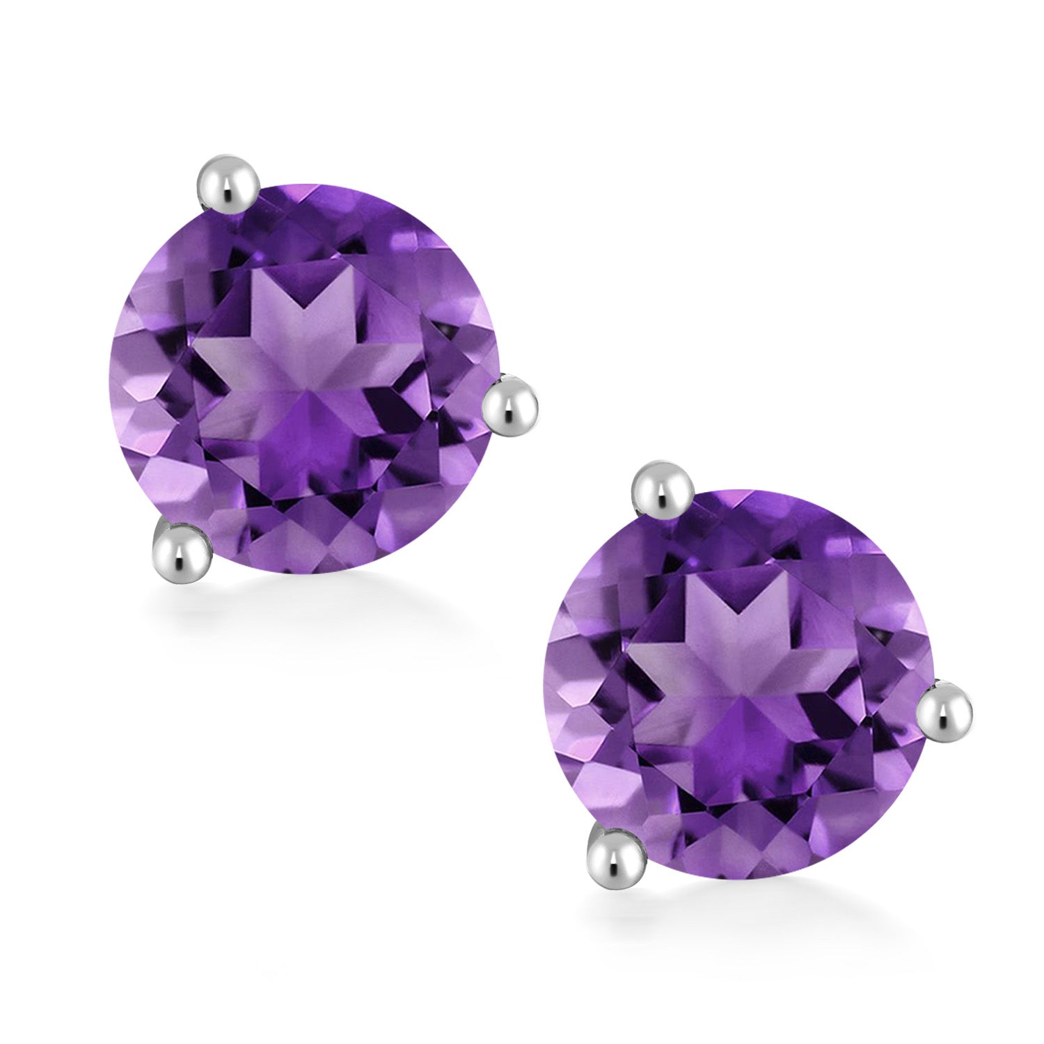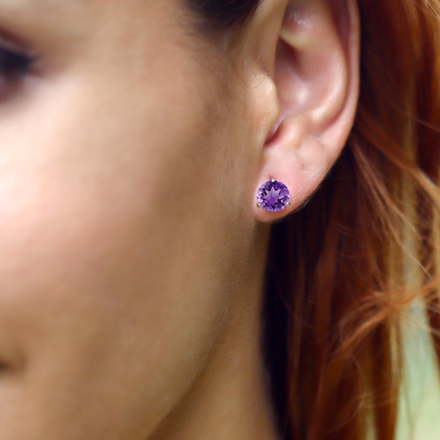14K White Gold Gemstone Birthstone Earrings | Martini Screw Back Stud Earrings | Round 8MM | White Gold Earrings For Women Men