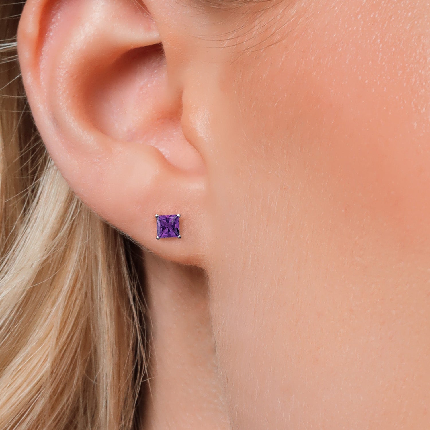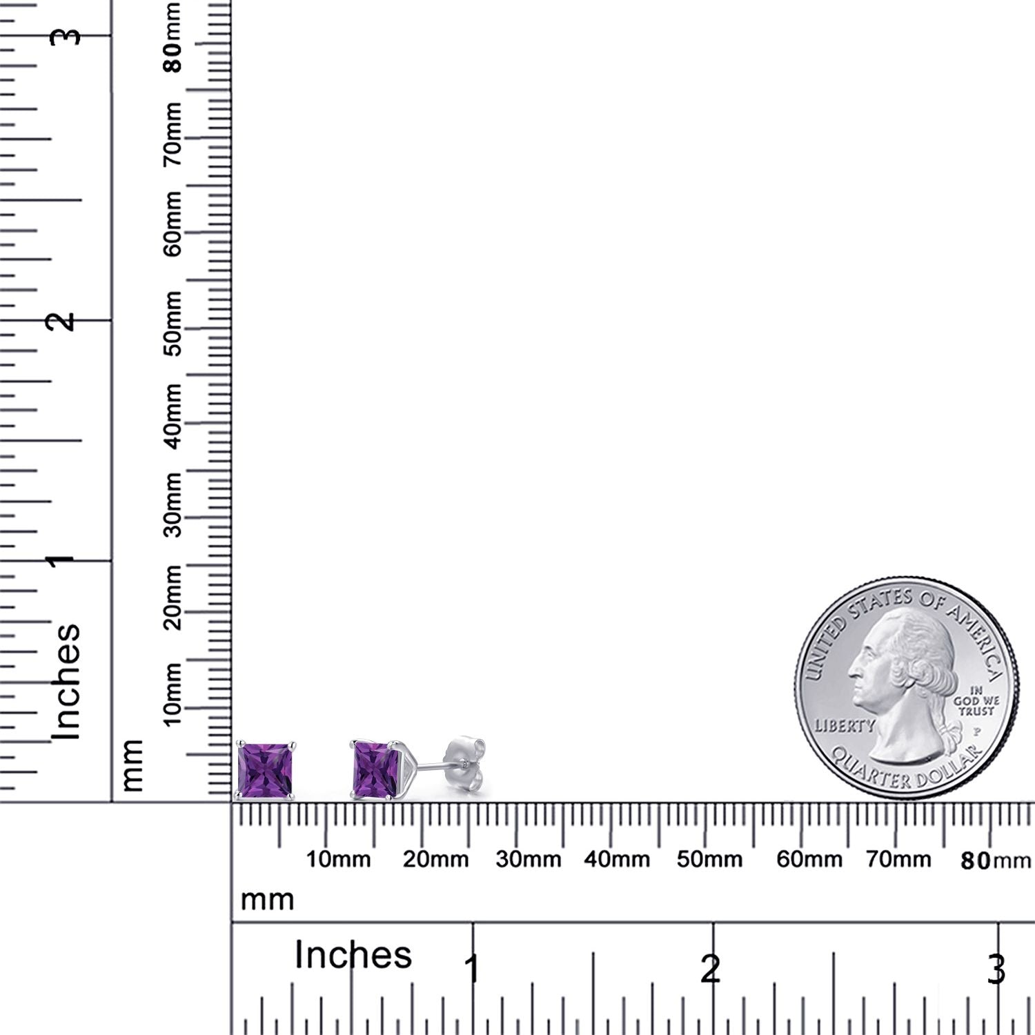 14K White Gold 5MM Princess Gemstone Birthstone Stud Earrings | Double Notch | Gold Earrings For Women Men