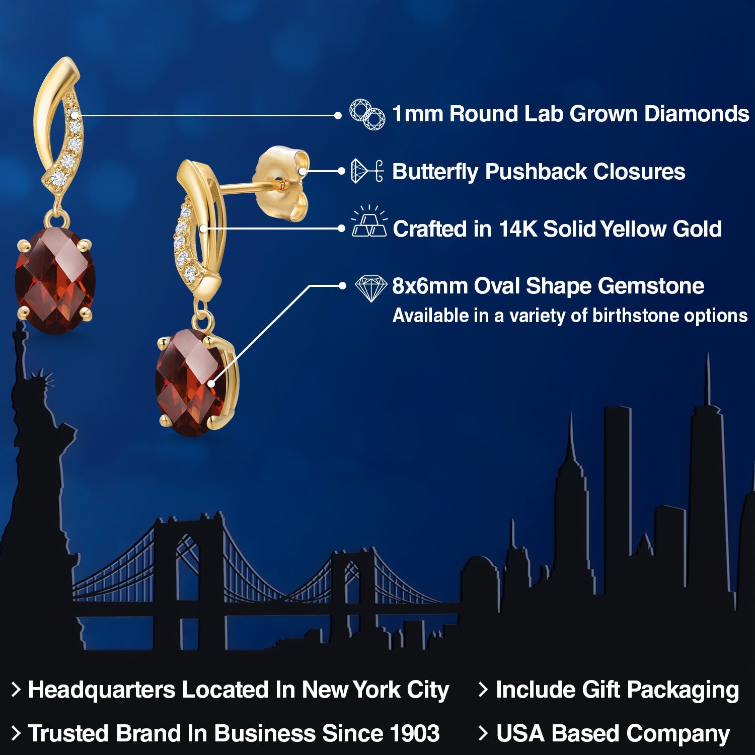 14K Yellow Gold Gemstone Birthstone and White Lab Grown Diamond Infinity Stud Dangle Earrings for Women | Oval Cut 8X6MM | Round 1MM | Fine Jewelry Gifts for Her Mom Women Wife