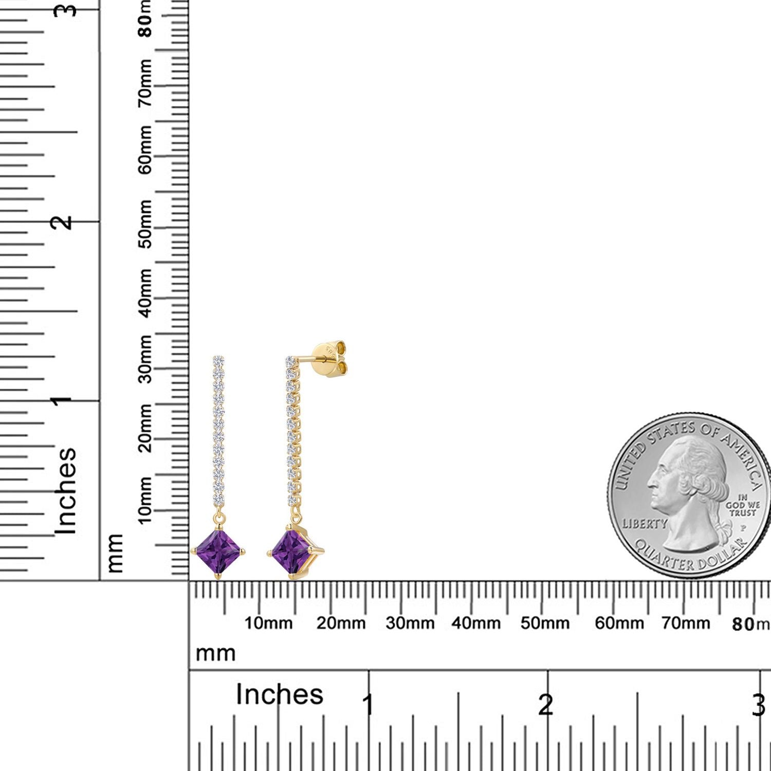 14K Yellow Gold Gemstone Birthstone and White Lab Grown Diamond Long Liner Dangle Earrings for Women | Princess 5MM | Yellow Gold Chain Drop Earrings