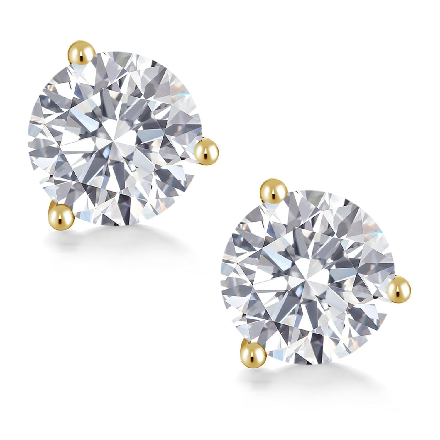 2 Cttw 14K Yellow Gold IGI Certified Lab Grown Diamond Martini Stud Earrings | Each 1 Ct Round 6.5MM | E-F Color | VS1-VS2 Clarity | Gold Earrings For Women Men