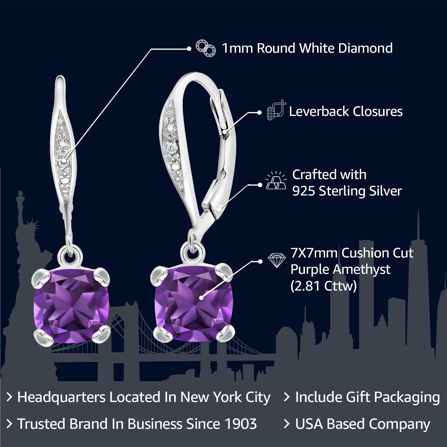 ELEGANT CUSHION CUT GEMSTONE DESIGN: These exquisite earrings feature 7mm cushion-cut gemstones, which provide a sophisticated and timeless look. The cushion cut enhances the gemstone's brilliance and depth, making these earrings a standout accessory for any occasion.