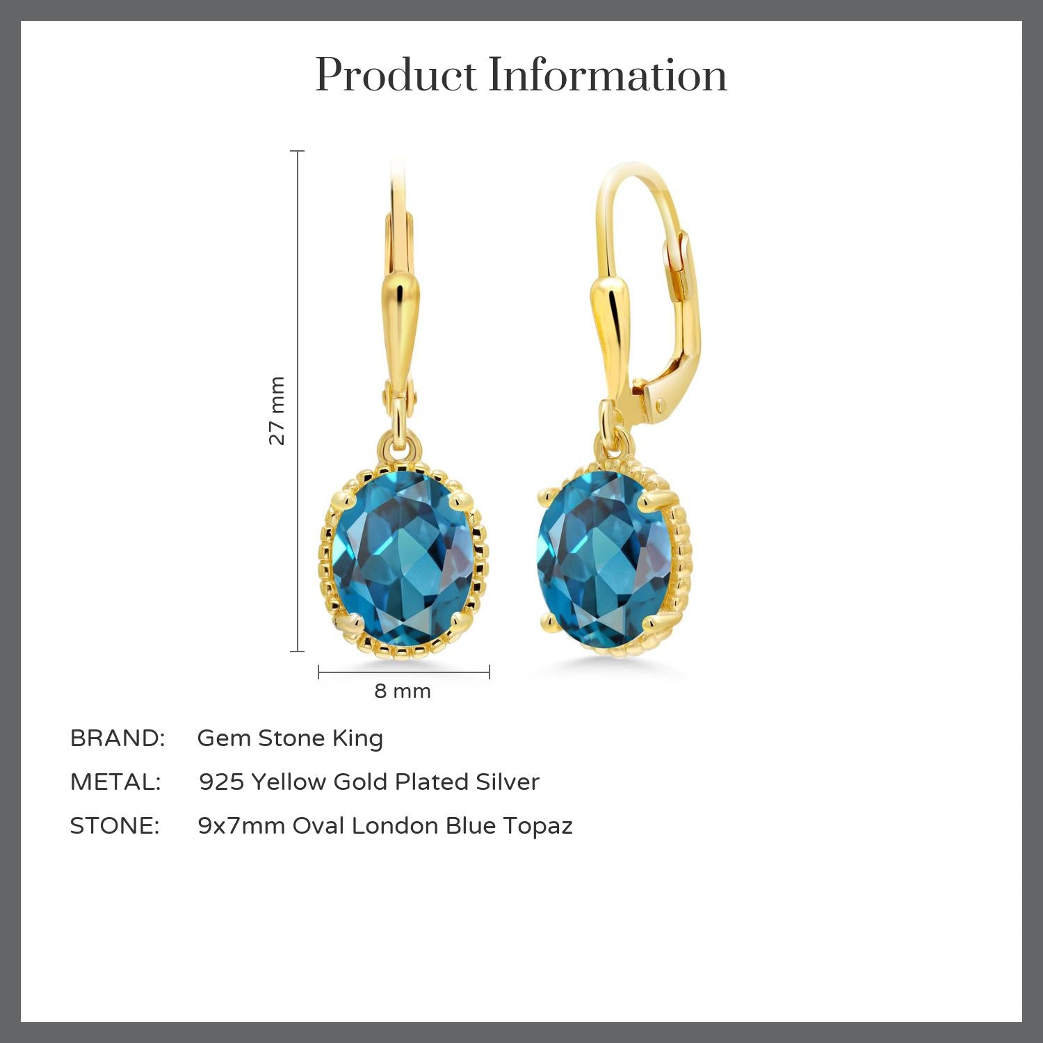 18K Yellow Gold Plated Silver 9X7MM Oval Gemstone Birthstone Leverback Drop Dangle Earrings | Gold Earrings For Women
