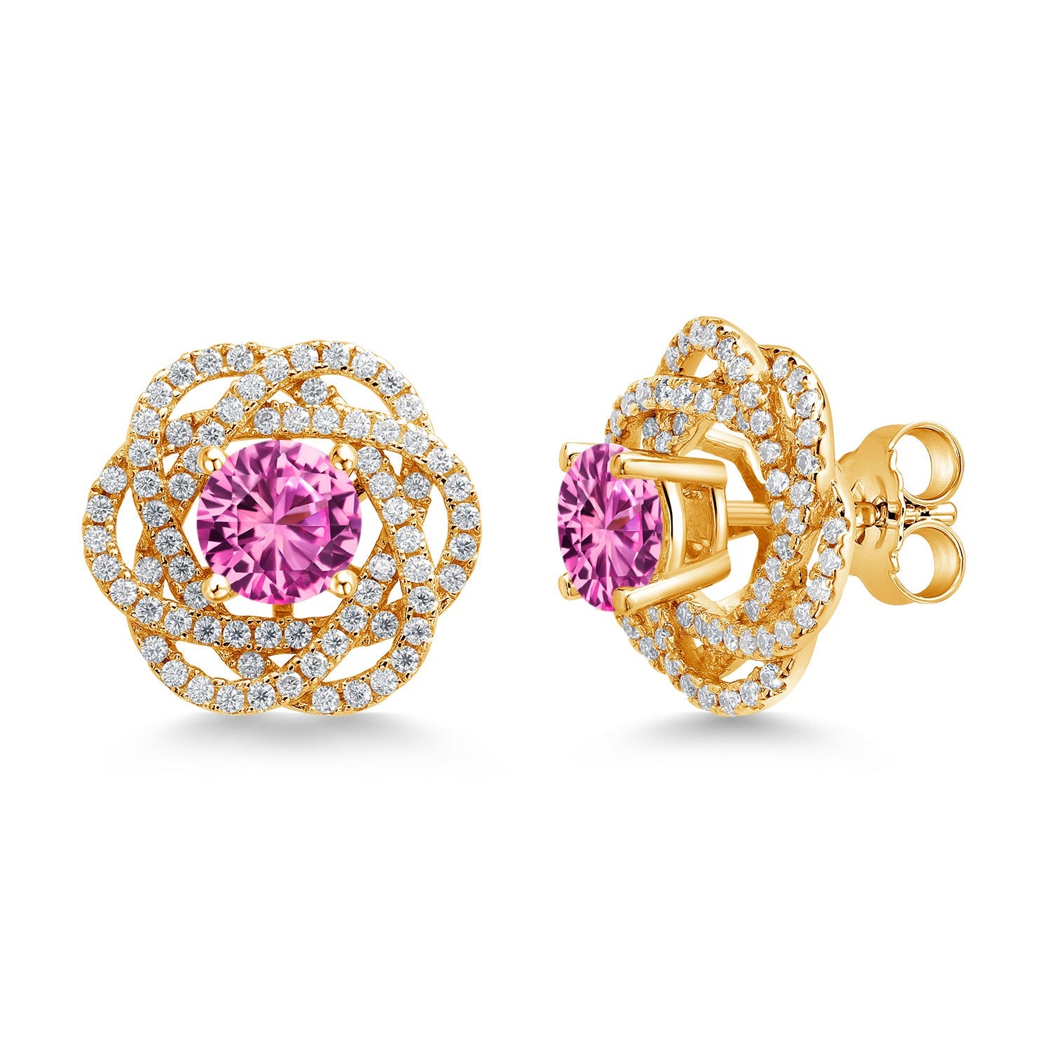HIGH-QUALITY CRAFTSMANSHIP: Crafted with genuine 18K Yellow Gold Plated Silver, these earrings offer both durability and a luxurious finish. The 6MM round gemstones and white Moissanite stones are meticulously selected for their vibrant color and exceptional clarity, ensuring a radiant sparkle that will be admired from every angle.