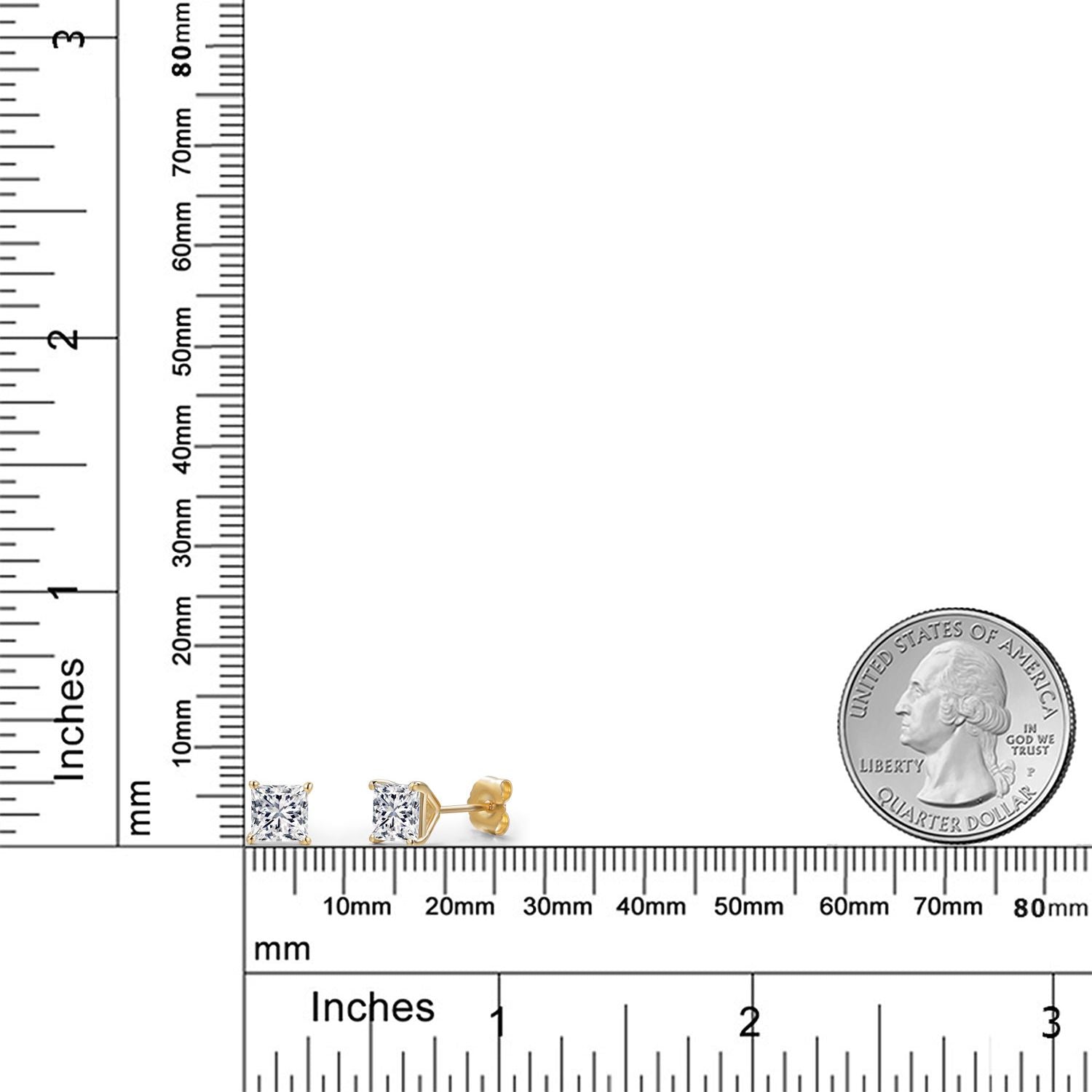 2.00 Cttw IGI Certified Lab Grown Diamond Stud Earrings For Women in 14K Yellow Gold | 1 Ct each Princess Cut | VS1-VS2 Clarity | E-F Color