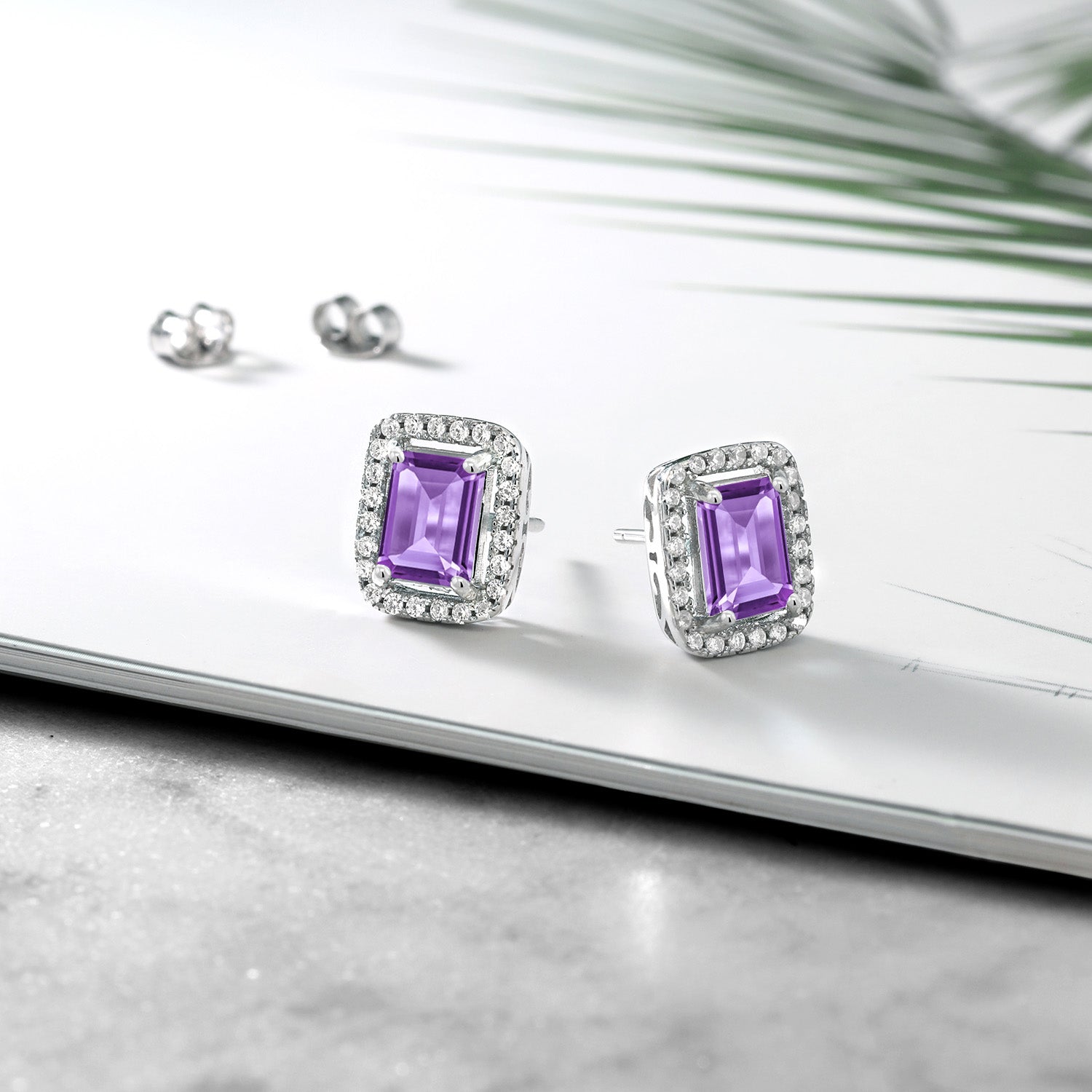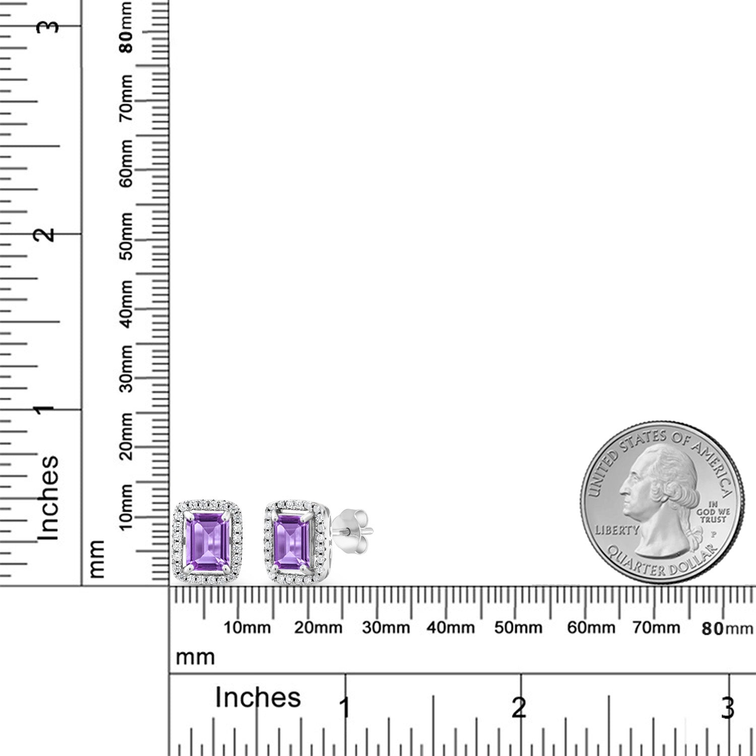 Halo Earring for Women | 925 Sterling Silver | Gemstone Birthstone Earrings | Emerald Cut 8X6MM | Fine Jewelry Gifts for Her Mom Women Wife