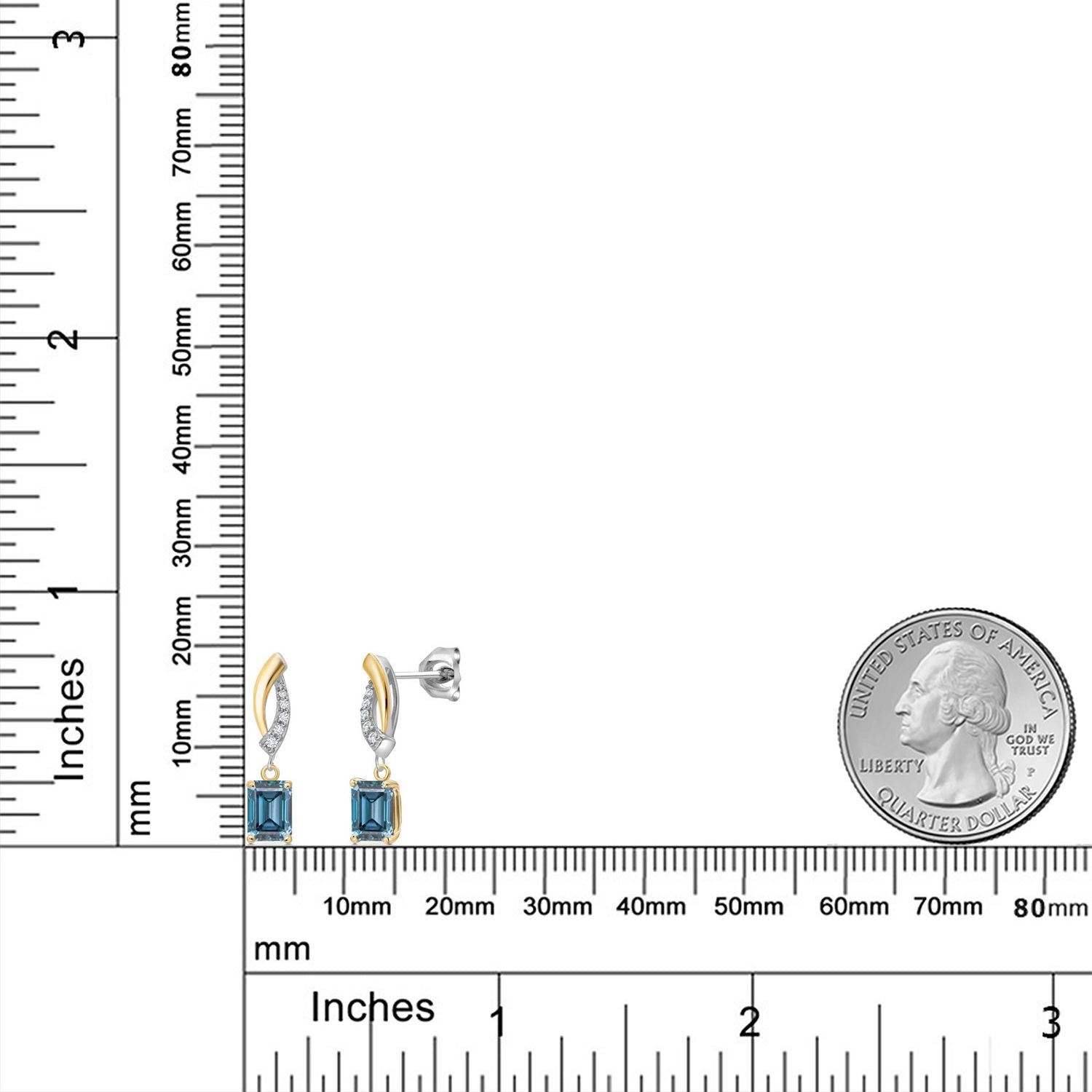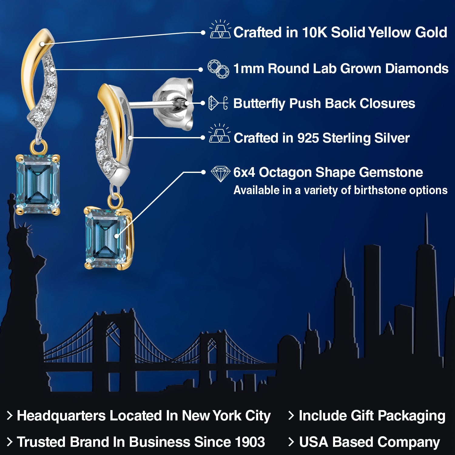 925 Silver and 10K Yellow Gold 6X4MM Emerald Cut Gemstone Birthstone and White Lab Grown Diamond Dangle Earrings for Women