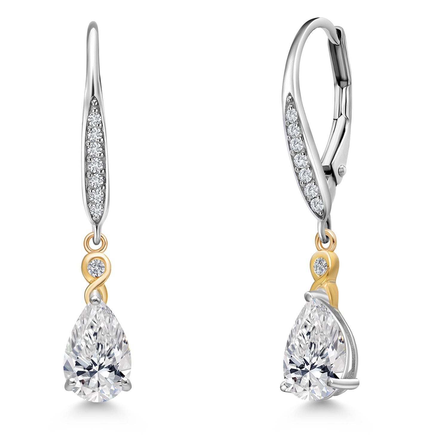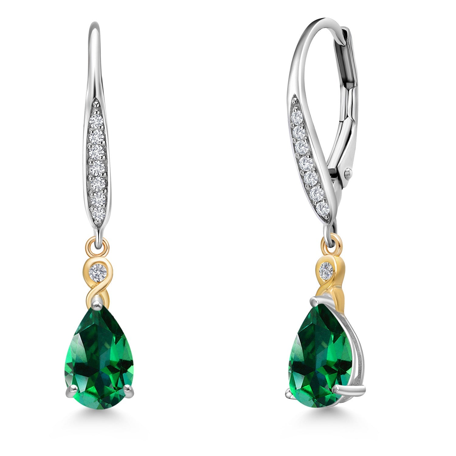 925 Silver and 10K Yellow Gold 8X5MM Pear Shape Gemstone Birthstone and White Lab Grown Diamond Leverback Drop Dangle Earrings For Women