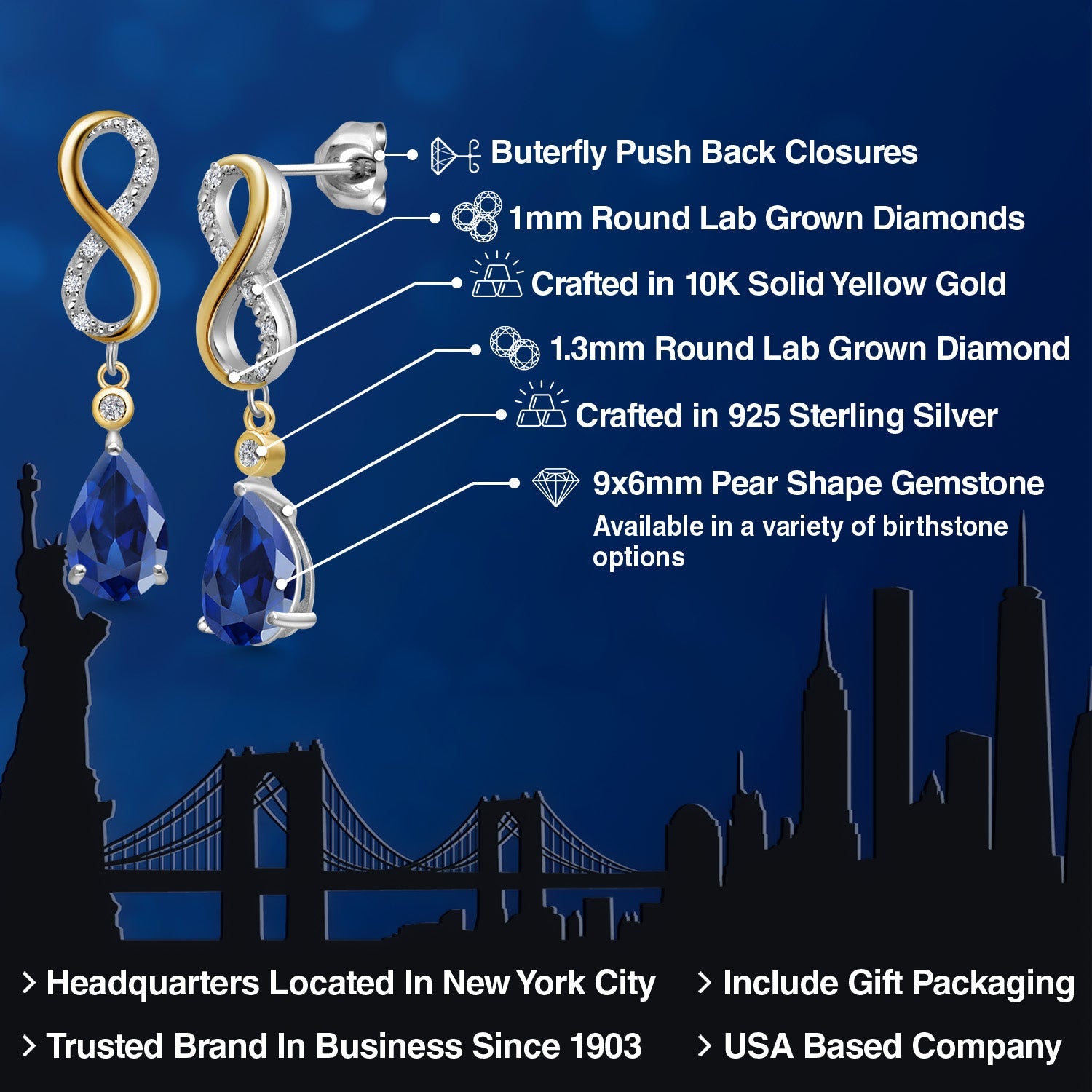 925 Silver and 10K Yellow Gold Blue Created Sapphire and White Lab Grown Diamond Dangle Earrings For Women | 5.12 Cttw | Gemstone September Birthstone | Pear Shape 9X6MM