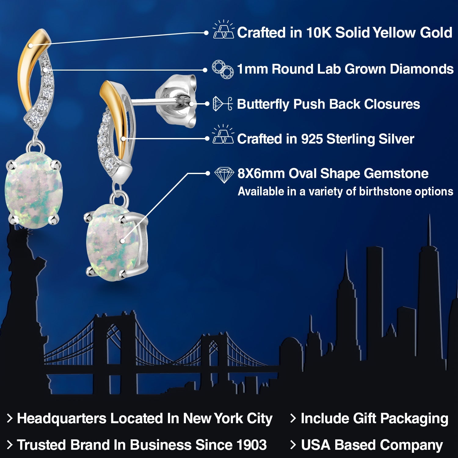 ELEGANT TWO-TONE DESIGN: These stunning drop dangle earrings blend the cool sheen of 925 sterling silver with the warm tones of 10K yellow gold, creating a sophisticated two-tone effect. The combination enhances the visual appeal of the oval 8X6MM gemstone, making these earrings a versatile addition to any jewelry collection.