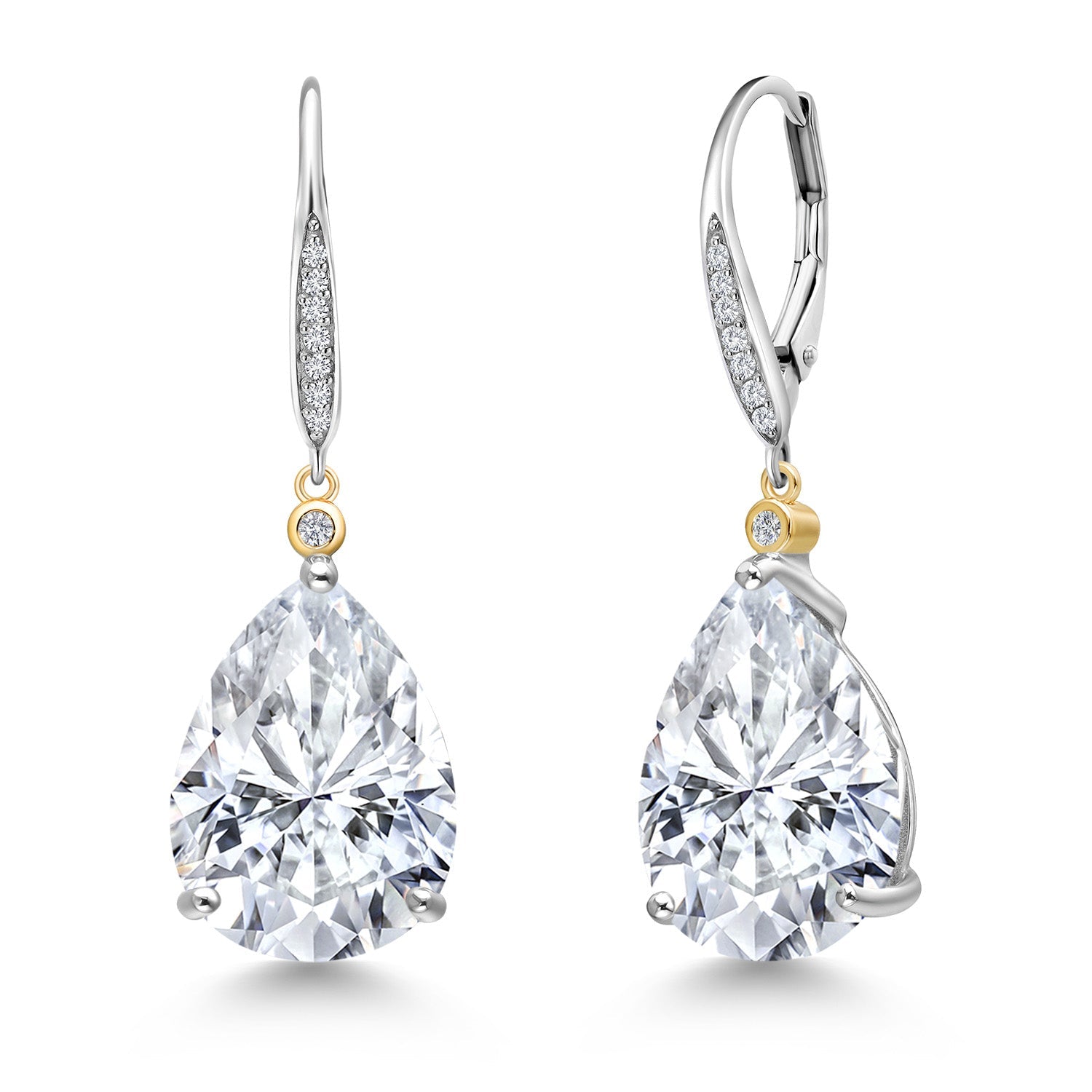 925 Silver and 10K Yellow Gold White Moissanite and White Lab Grown Diamond Dangle Earrings For Women | 18.37 Cttw | Gemstone | Pear Shape 16X12MM