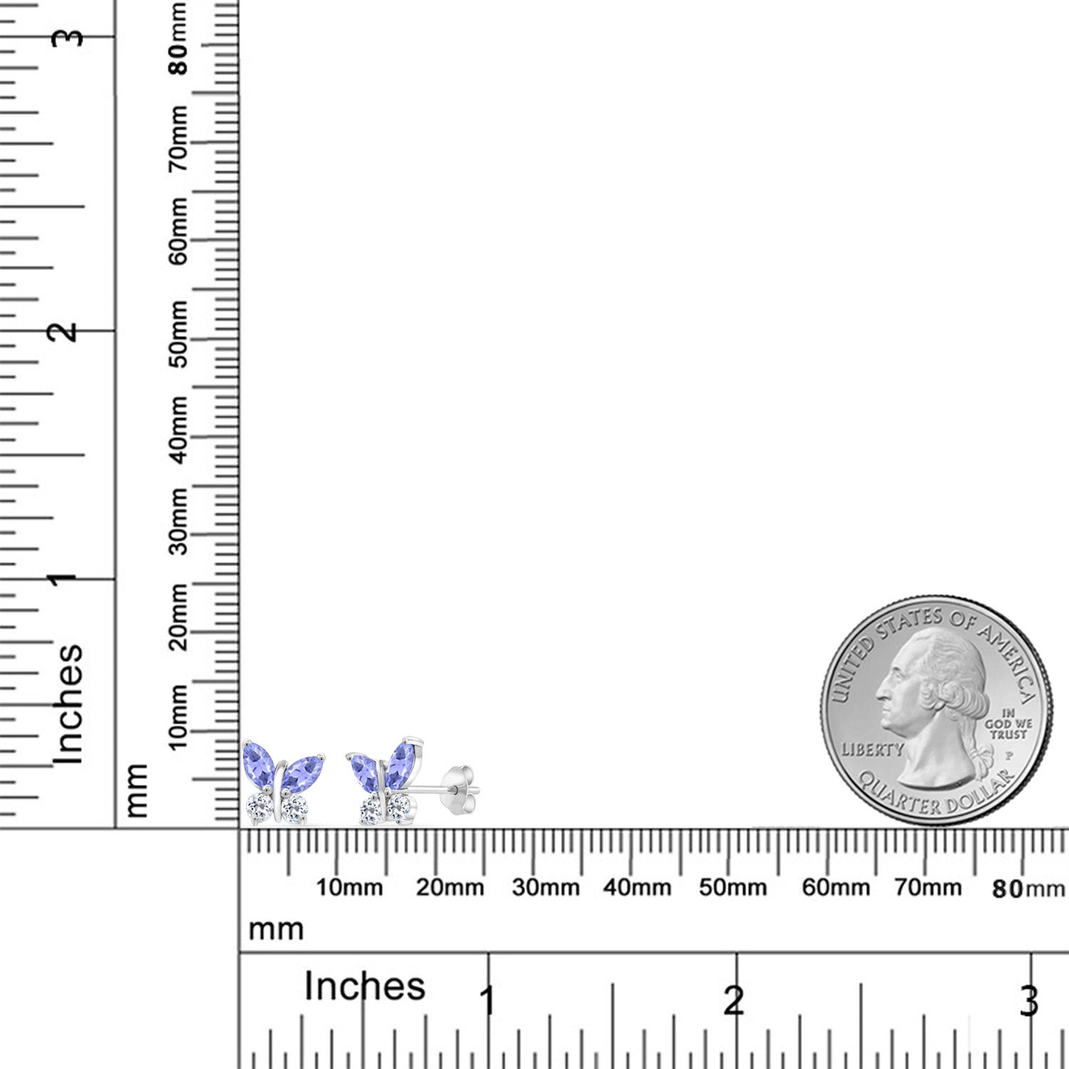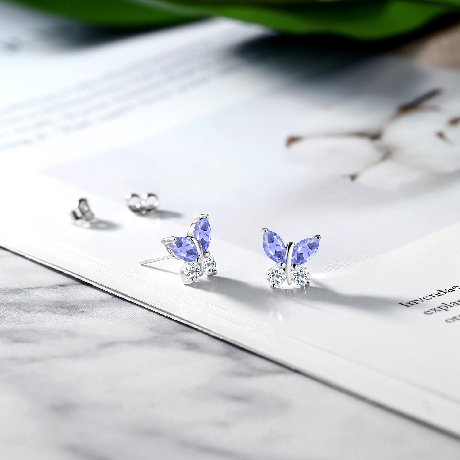 925 Silver Marquise Blue Tanzanite and White Topaz Butterfly Earrings For Women (1.56 Cttw, Gemstone December Birthstone, Center Stone: 6X3MM, Small Stones: 3MM)