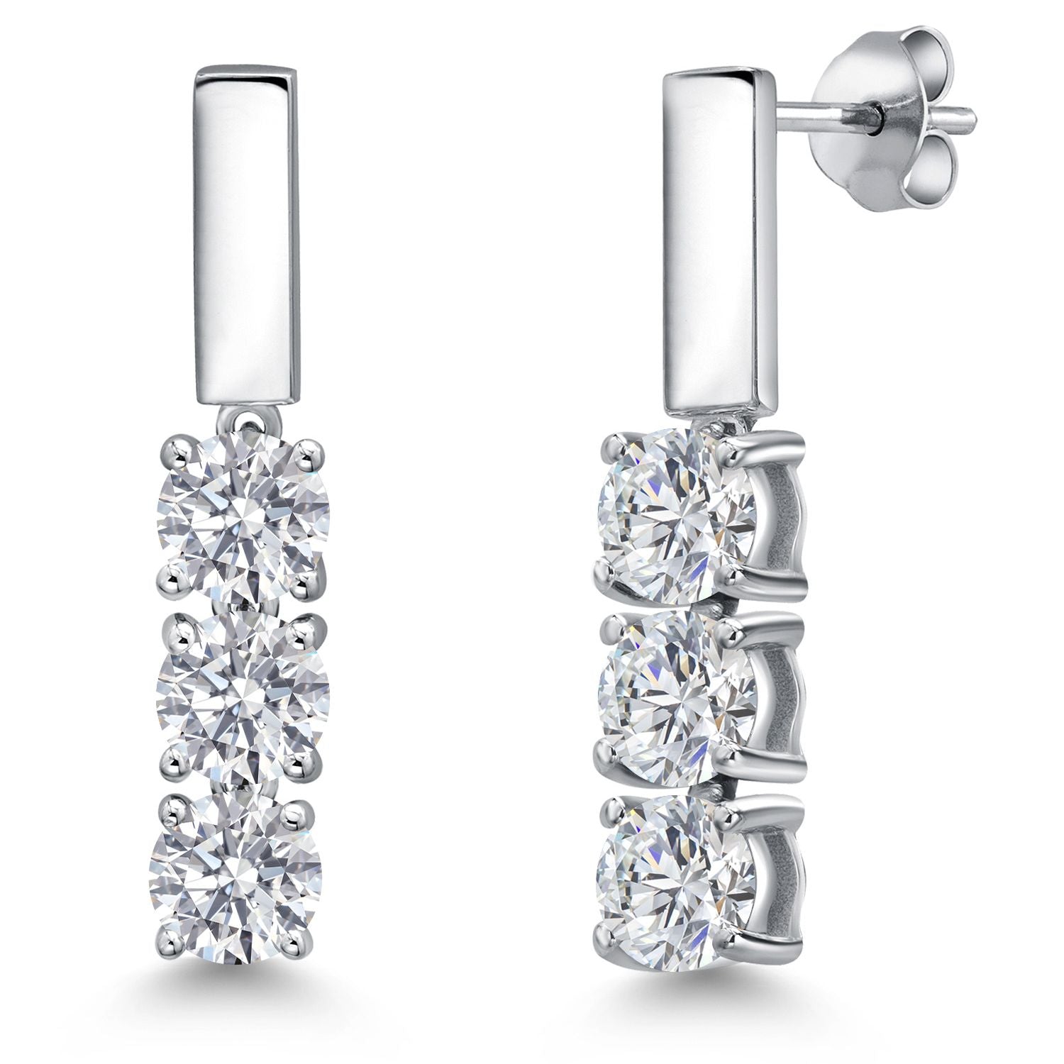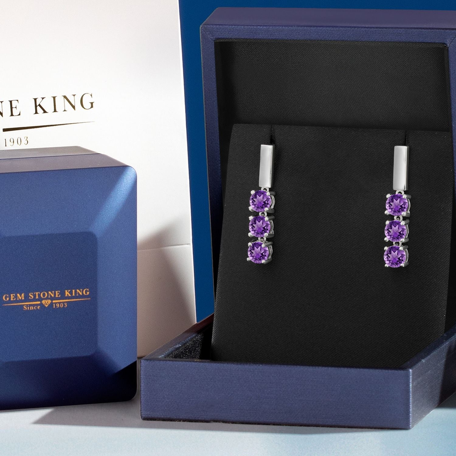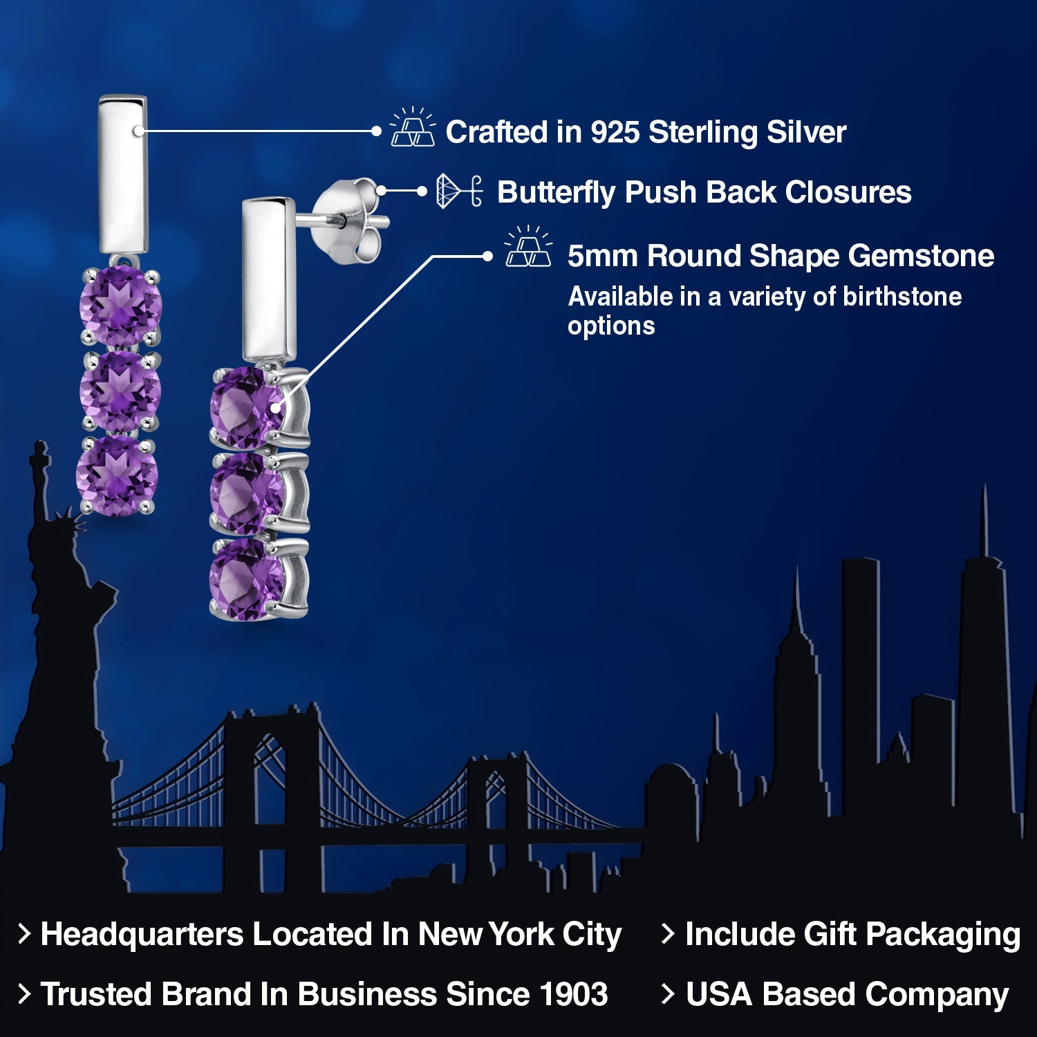 5MM Round Gemstone Birthstone Drop Dangle 3-Stone Earrings For Women | 925 Sterling Silver | Three Stone Fine Jewelry Gifts for Her Mom Women Wife