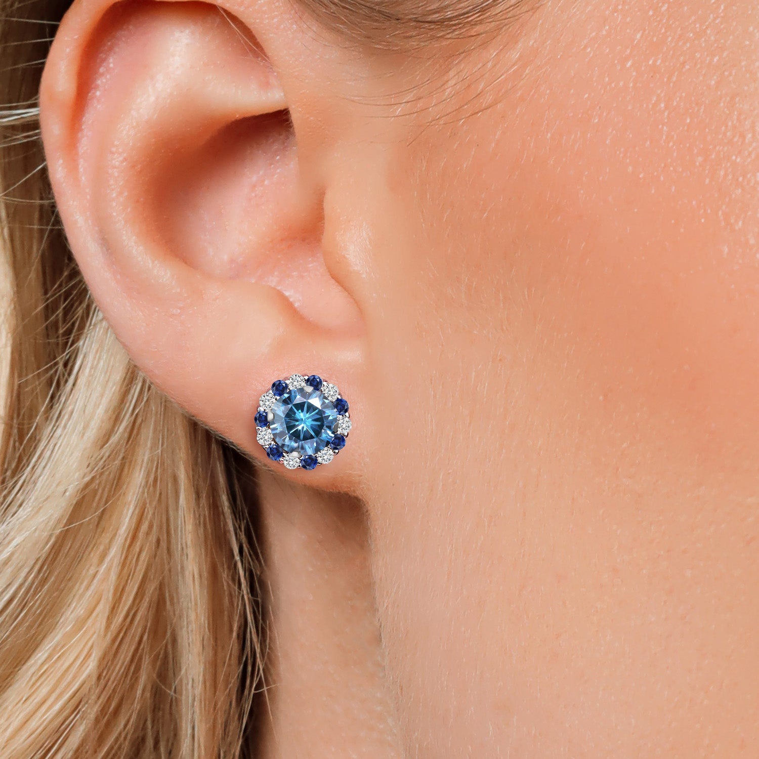 CUSTOMIZABLE GEMSTONE ELEGANCE: Featuring 6MM round gemstone birthstones of your choice, these earrings offer a personalized touch. Surrounded by sparkling 1.3MM round white and blue zirconia, each piece showcases dazzling brilliance, perfect for gifting or self-expression. Ideal for birthdays, anniversaries, or everyday wear, these earrings blend beauty with versatility.