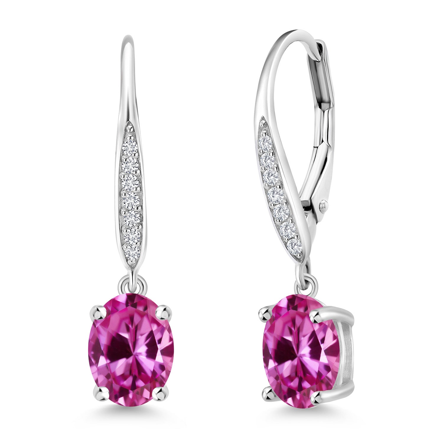 Dangle Drop Earrings For Women | 925 Sterling Silver | 8X6MM Oval Gemstone Birthstone and White Lab Grown Diamond Leverback Earrings