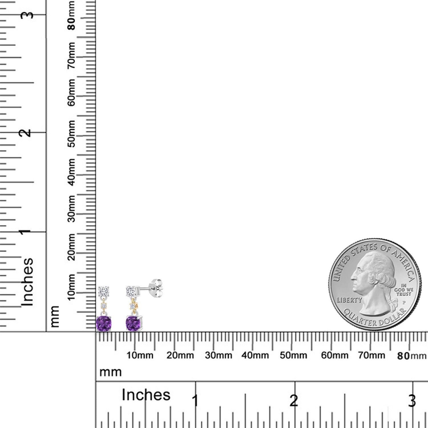 Dangle Earrings For Women | 925 Sterling Silver and 10K Yellow Gold | Cushion 4MM and 3MM Gemstone Birthstone and White Moissanite | Fine Jewelry Gifts for Her Mom Women Wife