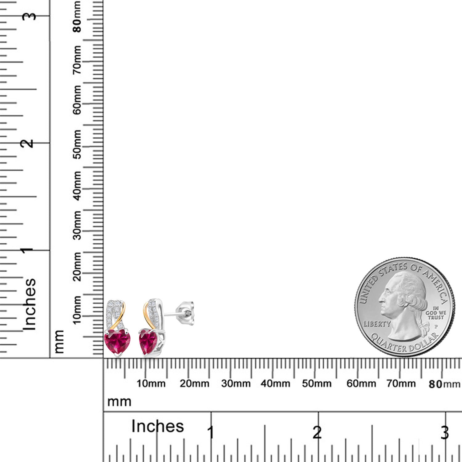 925 Sterling Silver and 10K Yellow Gold Red Created Ruby and White Lab Grown Diamond Heart Shape Earrings For Women (2.01 Cttw, Gemstone July Birthstone, Heart Shape 6MM)