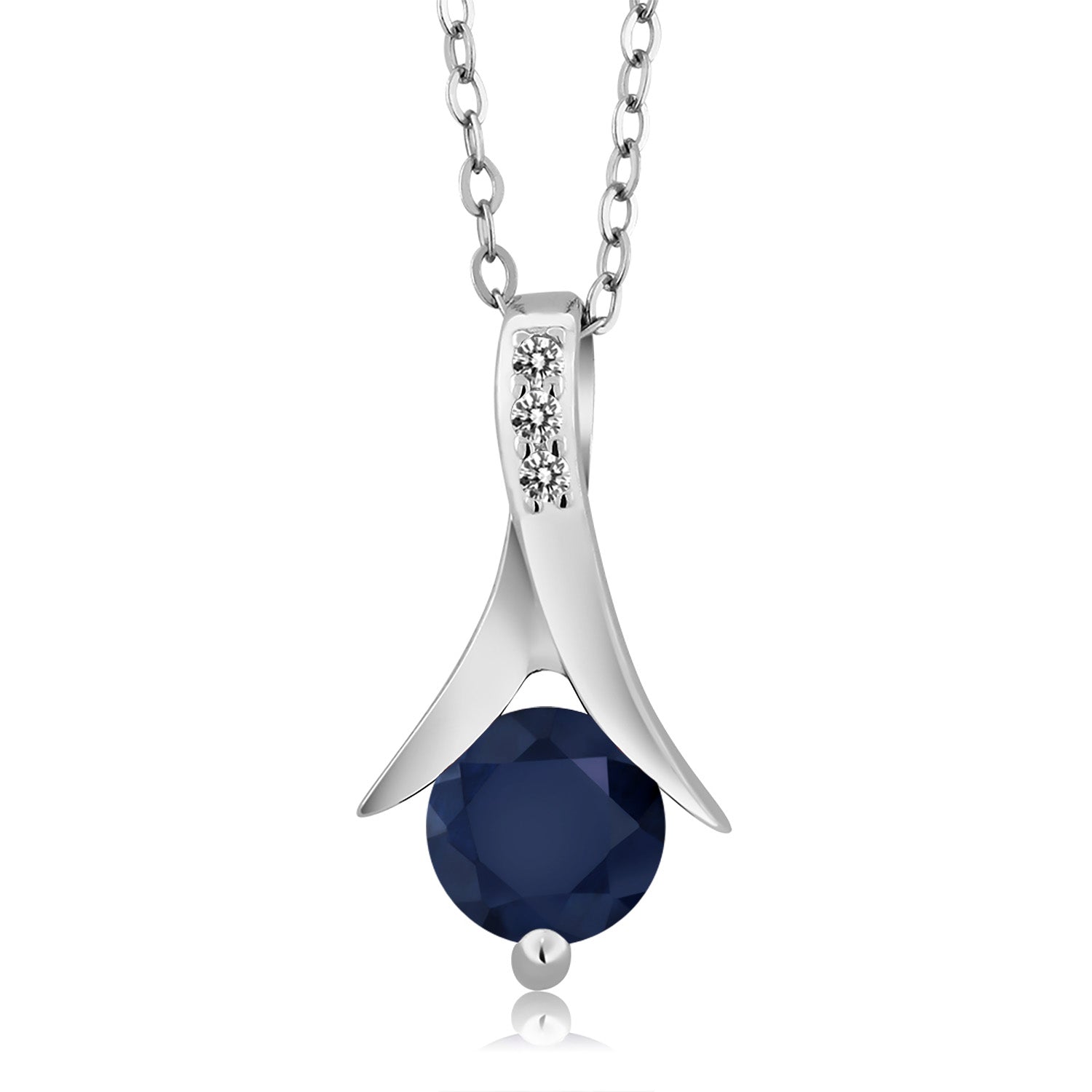 925 Sterling Silver Blue Sapphire and White Diamond Pendant and Earrings Jewelry Set For Women (3.05 Cttw, with 18 Inch Silver Chain)
