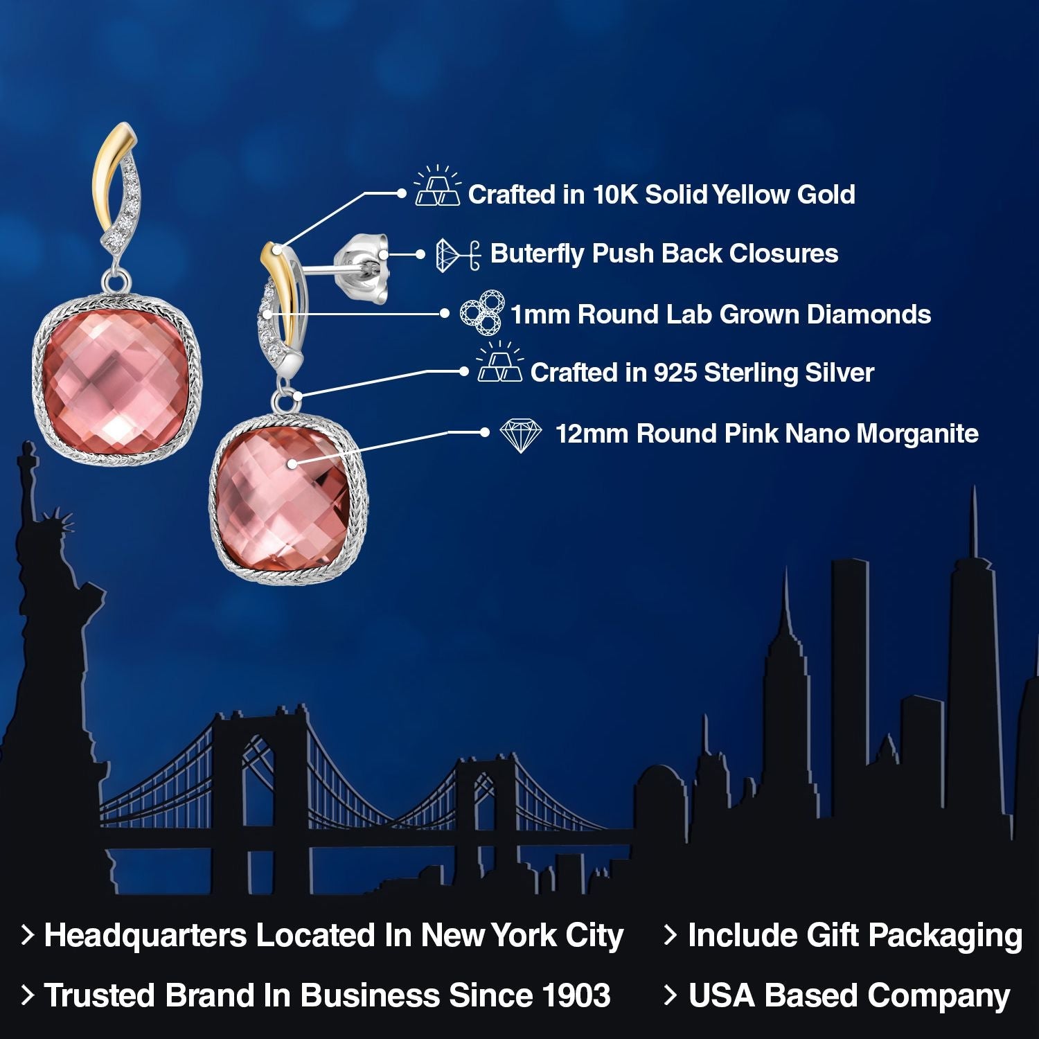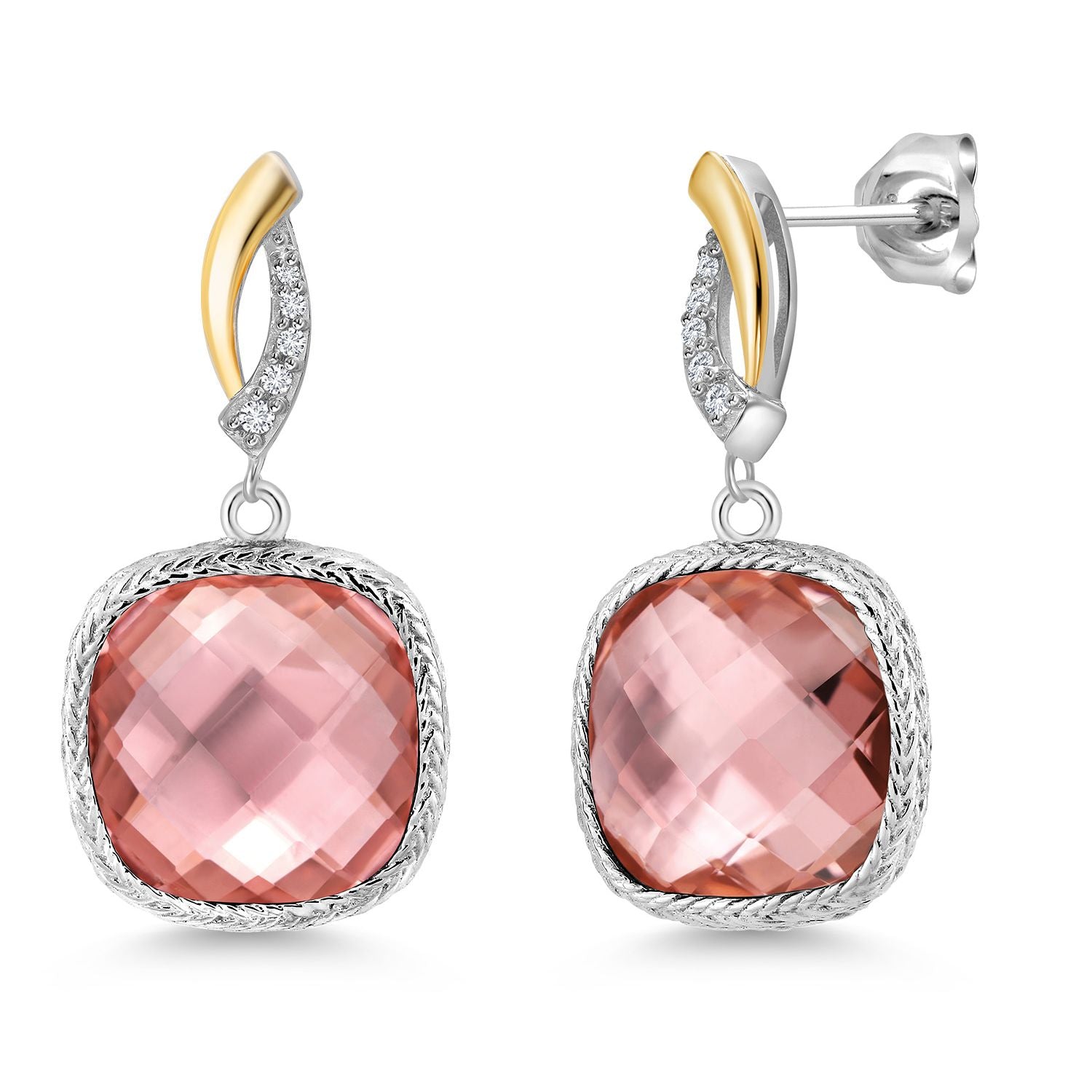 925 Sterling Silver Peach Nano Morganite and White Lab Grown Diamond Earrings for Women | 15.11 Cttw | Gemstone October Birthstone | Cushion 12MM