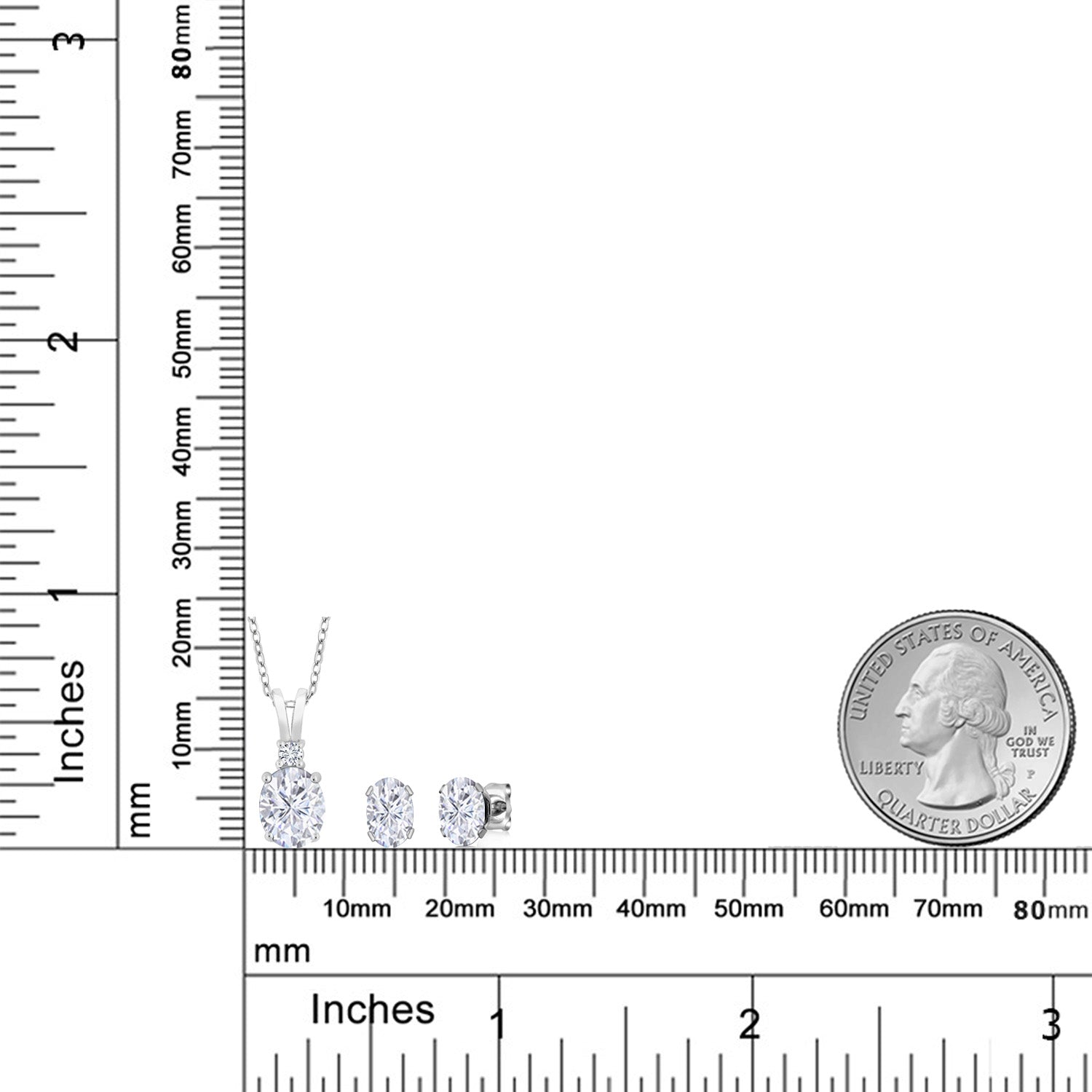 925 Sterling Silver White Moissanite and White Diamond Pendant Necklace Earrings Set For Women (3.37 Cttw, Oval 8X6MM and 7X5MM, with 18 Inch Chain)