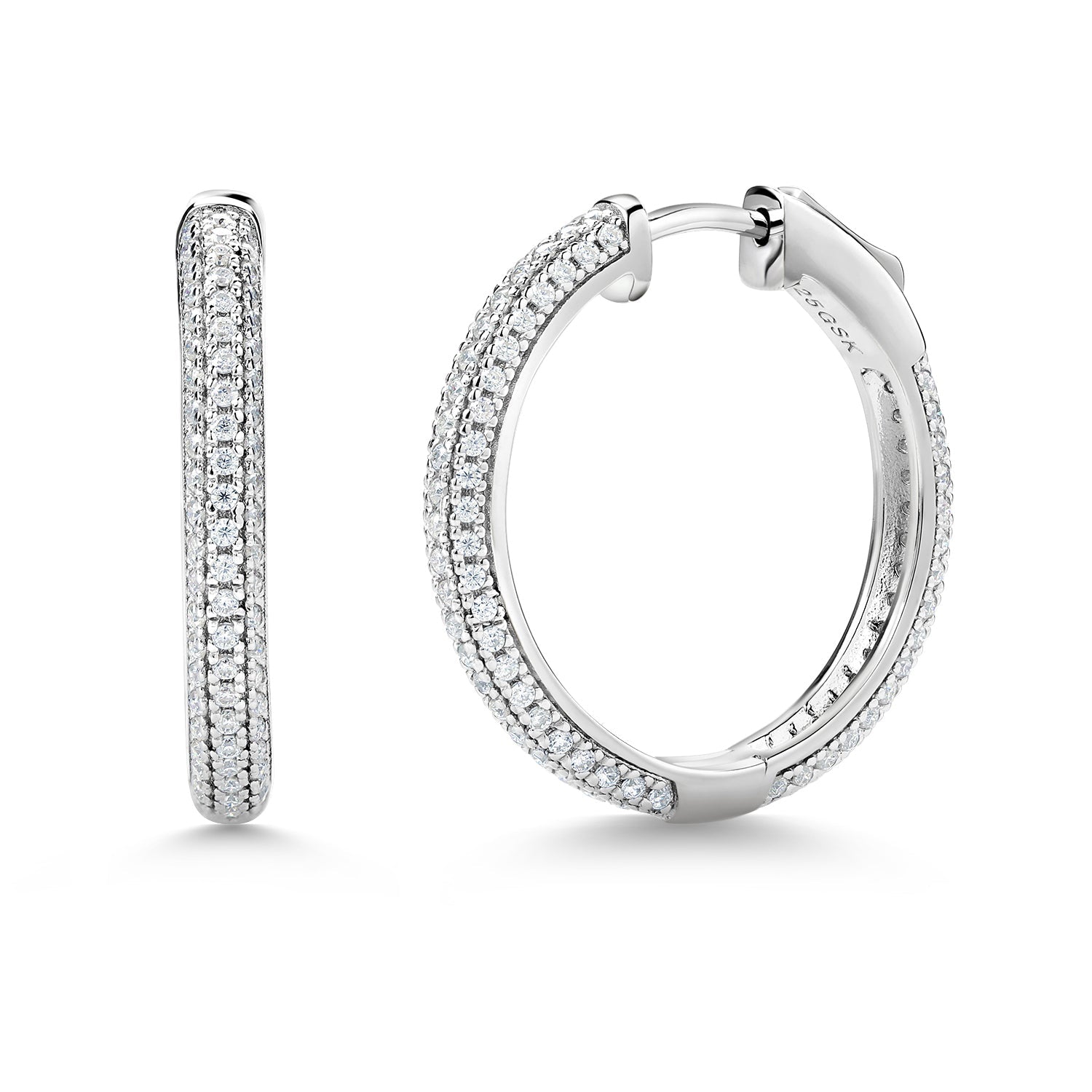 MOISSANITE GEMSTONES: The main feature of these earrings is the dazzling white moissanite gemstones set along the front of the hoop. Moissanite is a lab-created gemstone known for its brilliance, fire, and similarity to diamonds. It offers exceptional sparkle and radiance, making it a popular and affordable alternative to diamonds.